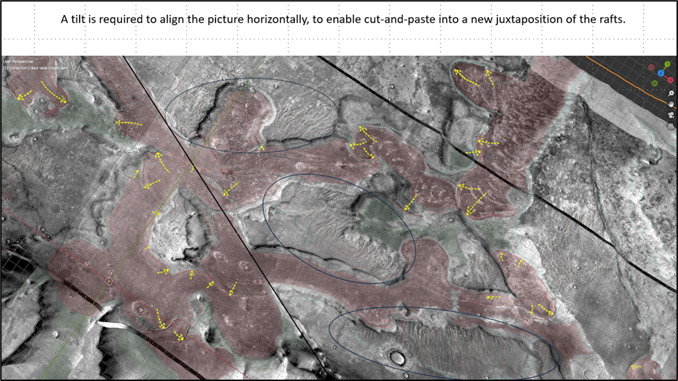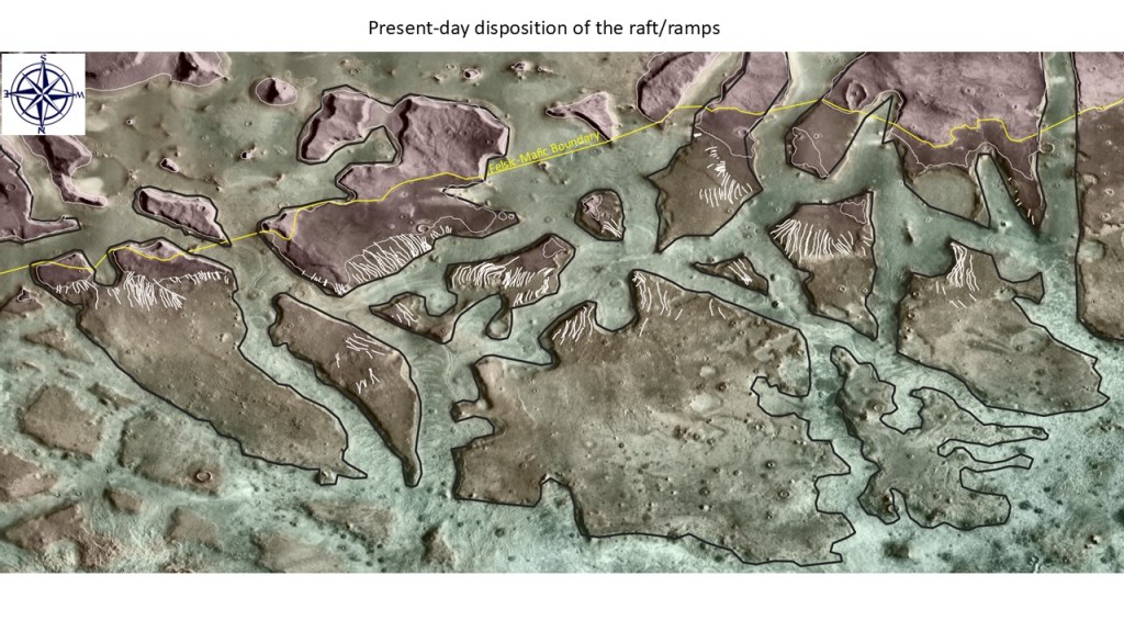 Given that a reconstruction of the ramps/raft would give a fairly linear shoreline trend I think that the icecap model best explains a collection of erosional patterns that extend along strike for upwards of 850km, at roughly the same elevation.